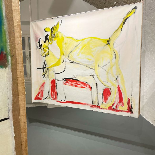 Manchmal kommt die persönliche Verbindung vor der künstlerischen. Beides kann sich entwickeln. Nino Svireli, Malerin und Julia Haugeneder, Bildhauerin und Filmemacherin, kennen sich von der HfbK Hamburg, leben nun beide seit 5 Jahren in Wien, sind befreundet und teilen sich ein Atelier. Zunächst nur vorübergehend, dann aufgrund des großen Erfolges verlängert. In dieser Zeit hat ihre Arbeit begonnen zu kommunizieren, zunächst sehr zaghaft, in den letzten zwei Jahren dann unübersehbar.